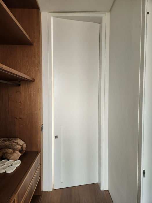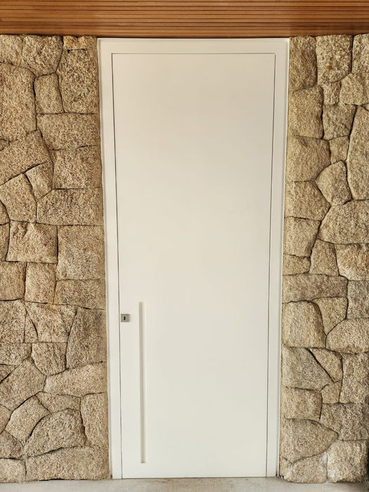 Portas internas e externas personalizadas, com diversas tipologias e acabamentos. Para as portas internas, oferecemos opções laminadas em diferentes lâminas, cores, pintura e verniz. Contamos também com portas com bunha, ferragens Eclisse entre outras e sistemas exclusivos, sempre com materiais de alta qualidade, garantindo design único, durabilidade e resistência.